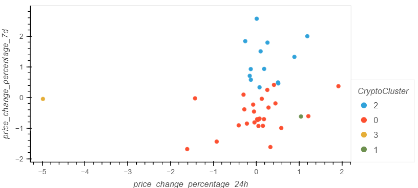 This project explores the impact of 24-hour and 7-day price changes on cryptocurrency clustering using unsupervised learning techniques. The objective is to determine whether cryptocurrencies can be grouped based on their price fluctuations using K-Means and PCA.